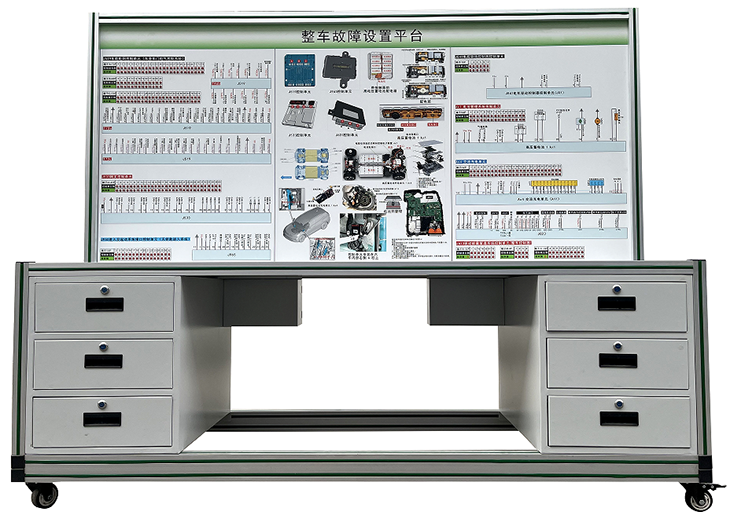 采用純電動汽車原車插接器實物制作,無損原車部件與線束,包括電池管理系統(tǒng)、電機控制器、交流充電單元、無鑰匙進入系統(tǒng)、車身控制系統(tǒng)、車身電氣系統(tǒng),網(wǎng)關(guān),車門電腦系統(tǒng)插接器及專用線束,通過專用線束與車輛連接,可直接在檢測臺面板上檢測系統(tǒng)電路元件的電信號,如電阻、電壓、電流、頻率信號等,可完成電動汽車整車系統(tǒng)(電池管理系統(tǒng)、電機控制器、交流充電單元、無鑰匙進入系統(tǒng)、車身控制系統(tǒng)、車身電氣系統(tǒng),網(wǎng)關(guān),車門電腦系統(tǒng))相關(guān)的實驗實訓內(nèi)容。