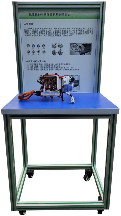 電動車壓縮機結(jié)構(gòu)解剖實訓臺選用主流純電動車配套電動車壓縮機;通過解剖,展示現(xiàn)電動車壓縮機內(nèi)部結(jié)構(gòu)和控制原理。