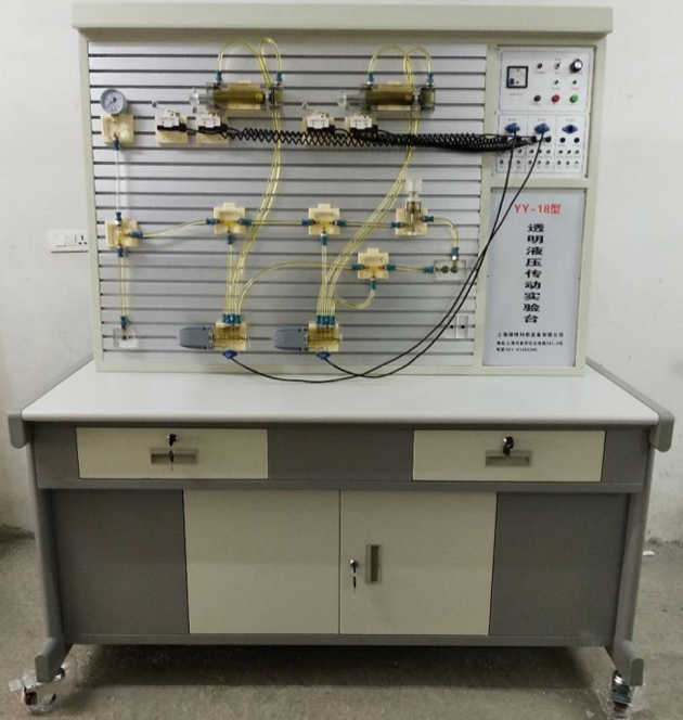 液壓實(shí)驗(yàn)元件均為透明有機(jī)材料制成,透明直觀。便于了解掌握幾十種常用液壓元件的結(jié)構(gòu)、性能及用途。掌握幾十種基本實(shí)驗(yàn)回路的工作過(guò)程及原理。實(shí)驗(yàn)時(shí),組裝實(shí)驗(yàn)回路快捷、方便。氣動(dòng)實(shí)訓(xùn)與液壓實(shí)訓(xùn)電氣主控單元配備2套PLC控制與2套繼電器控制,簡(jiǎn)單實(shí)用。