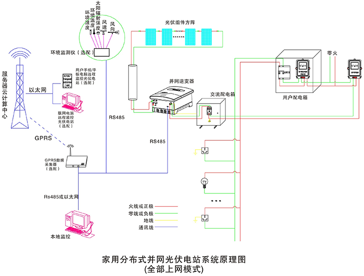 在晴朗的白天,裝在屋頂上的光伏組件發(fā)出的直流電經(jīng)過并網(wǎng)逆變器逆變成與電網(wǎng)同頻率同相位的單相交流電給負(fù)載進行供電,在夜晚或陰雨天等太陽光照不足的情況下,系統(tǒng)處于待機狀態(tài),負(fù)載用電全部來自電網(wǎng)。您可以通過系統(tǒng)監(jiān)控軟件來實時查看系統(tǒng)的運行狀態(tài)和故障信息,或者是選配遠(yuǎn)程通訊數(shù)據(jù)采集器,將系統(tǒng)工作數(shù)據(jù)通過GPRS或以太網(wǎng),傳輸?shù)侥氖謾C、平板電腦或任意一臺聯(lián)網(wǎng)的電腦,以便于您遠(yuǎn)程實時掌控電站的信息。