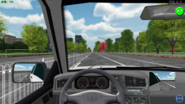 3)具有座艙和顯示器的互動視景系統(tǒng),并具有錯誤駕駛記錄和提示功能;右暰跋到y(tǒng)應具備圖形工作站、顯示設備、音響功放等組成,可實現(xiàn)駕駛員前景140度以上視角的屏幕顯示。