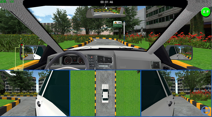 (2)雨天駕駛:突出道路濕滑、積水時的安全駕駛操作方法、防范汽車側滑、甩尾的駕駛規(guī)范,真實模擬雨點與玻璃的碰撞、視線的漸變、雨刮刮過的效果、車外后視鏡的模糊等,雨刮器的使用;霧天駕駛:突出視線不好,近光燈的使用、喇叭的使用及霧天安全駕駛要領;