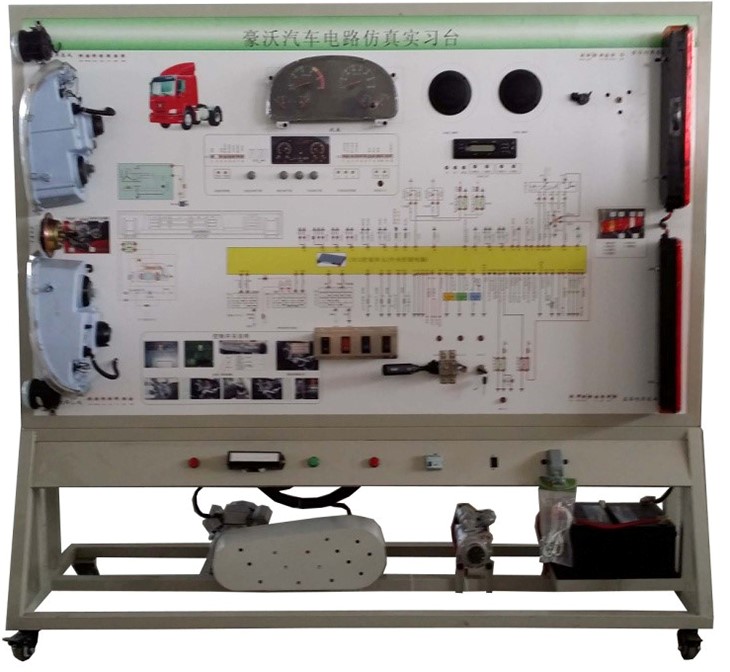 全車電器電路原理及操控實訓設(shè)備采用全新豪沃ZZ1167柴油機整車電器實物為基礎(chǔ),充分展示汽車儀表系統(tǒng)、燈光系統(tǒng)、雨刮系統(tǒng)、喇叭系統(tǒng)、發(fā)動機電器系統(tǒng)、起動系統(tǒng)和充電系統(tǒng)等汽車電器各系統(tǒng)的組成結(jié)構(gòu)和工作過程。
