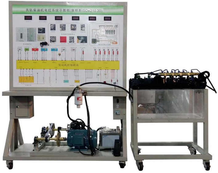 1.真實(shí)可運(yùn)行的共軌柴油發(fā)動機(jī)燃油噴射系統(tǒng),充分展示燃油噴射系統(tǒng)的組成結(jié)構(gòu)和工作過程。電機(jī)驅(qū)動曲軸位置信號輪,可演示電子燃油噴射工作情況。