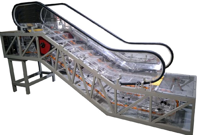 透明教學自動扶梯模型,適用于職業(yè)院校、中職院校電梯技術(shù)專業(yè)學員進行自動扶梯梯級拆裝、操縱和維修保養(yǎng)實訓(xùn)教學訓(xùn)練。扶梯模擬實訓(xùn)裝置采用優(yōu)質(zhì)方管焊接密紋噴塑組裝成扶梯桁架,梯級踏板系統(tǒng)、扶手帶系統(tǒng)、曳引機系統(tǒng),設(shè)備臺架、安全檢測系統(tǒng),電氣控制控制系統(tǒng)等。