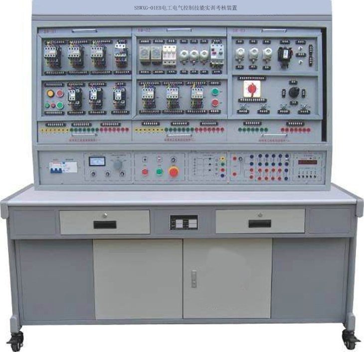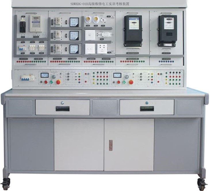 電氣安裝與維修實(shí)訓(xùn)考核裝置是根據(jù)工廠電氣安裝和室內(nèi)電氣安裝等維修 電工和電氣安裝工實(shí)訓(xùn)鑒定要求開(kāi)發(fā)的一種通用實(shí)訓(xùn)平臺(tái)。 適合于各類職業(yè)院校 和技工學(xué)校維修電工、 電氣安裝工、水電工等有電氣實(shí)訓(xùn)要求的相關(guān)專業(yè)的作為 公共實(shí)訓(xùn)平臺(tái)使用。 采用鋼制網(wǎng)孔板和鋼制專用型材組接而成,安裝有自鎖式腳輪,方便移動(dòng)和使用。裝 置表面噴塑,色彩穩(wěn)重氣派。電氣安裝與維修實(shí)訓(xùn)裝置設(shè)計(jì)高度以人站在一級(jí)人字梯即可方便操作的高度,既安 全又能使使用者感受到施工現(xiàn)場(chǎng)環(huán)境。 橫向、 叢向?qū)挾群线m, 可以模擬現(xiàn)場(chǎng)線路的轉(zhuǎn)向布置。
