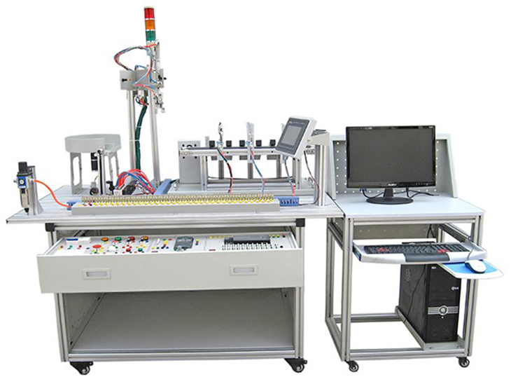 光機電一體化實訓考核裝置、光機電一體化實訓考核設(shè)備是一種最為典型的機電一體化產(chǎn)品,是為職業(yè)院校、職業(yè)教育培訓機構(gòu)而研制的,適合機電一體化、電氣自動化等相關(guān)專業(yè)的教學和培訓。光機電一體化實訓考核裝置它在接近工業(yè)生產(chǎn)制造現(xiàn)場基礎(chǔ)上又針對教學及實訓目的進行了專門設(shè)計,強化了機電一體化的安裝與調(diào)試能力。光機電一體化實訓考核裝置由導軌式型材實訓臺、機電一體化設(shè)備部件、電源模塊、按鈕模塊、PLC模塊、變頻器模塊、交流電機模塊、步進電機及驅(qū)動器模塊、模擬生產(chǎn)設(shè)備實訓單元(包含上料機構(gòu)、搬運機械手、皮帶輸送線、物件分揀等)和各種傳感器等組成。采用開放式和拆裝式結(jié)構(gòu)設(shè)計,可根據(jù)現(xiàn)有的機械部件組裝生產(chǎn)設(shè)備,使整個裝置能夠靈活的按實訓教學需要組裝機電一體化設(shè)備。裝置采用工業(yè)標準結(jié)構(gòu)設(shè)計及抽屜式模塊放置架,組合方便?刂茖ο缶捎玫湫蜋C電設(shè)備部件,接近工業(yè)現(xiàn)場環(huán)境,滿足實訓教學或技能競賽需求。